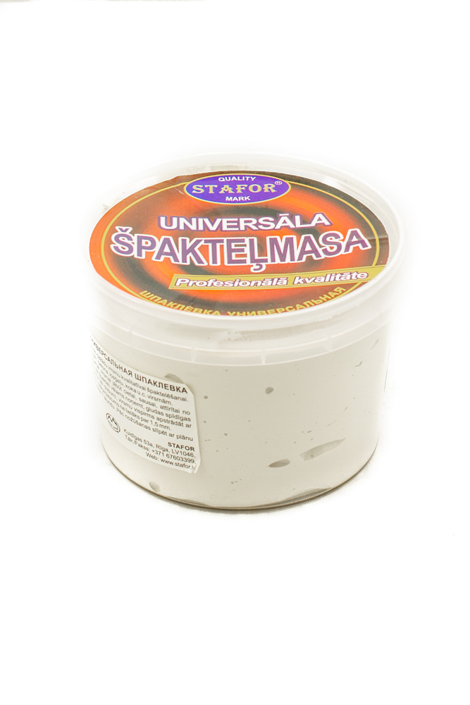 USER GUIDE: Processed surface should be solid, dry, purified from chalk, dust and dirt. It is advisable to remove the old paint or spatula, smooth shiny surfaces should be cleaned and degreased. In case of justifying big cavities, the surface should be first processed with putty STAFOR. Mass to be applied with a spatula, layer thickness not more than 1, 5 mm.