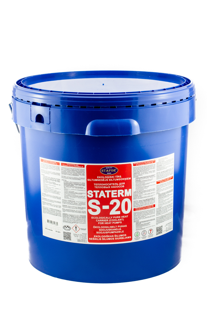 Special eco-friendly heat carrier for low-temperature heat pump circuit and the other heat exchange equipment. Heat carrier has high thermal capacity and low viscosity, which reduces the load on the pumps. Designed for use in heating systems with closed-type equipment from steel, plastics, iron and copper pipes. Prevents the system from freezing. Prolongs the life of the heating equipment.